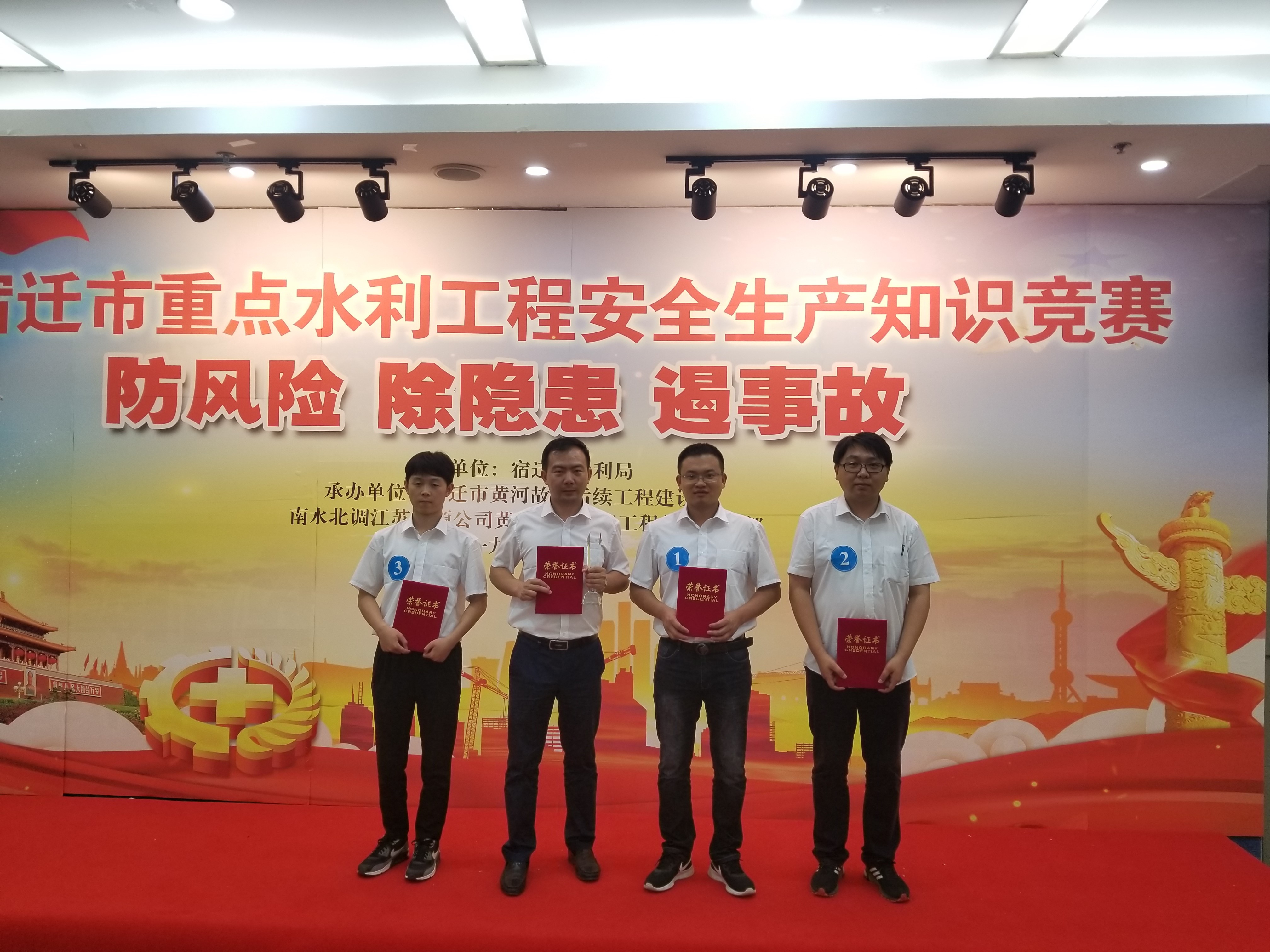 为深入推进安全生产月活动开展,普及安全生产法律知识,提高安全生产意识,筑牢安全生产防线,宿迁市水利局组织开展了“宿迁市重点水利工程安全生产知识竞赛”活动。我公司宿迁市黄河故道后续工程施工3标项目经理部派出代表队经海选、初赛、复赛多轮角逐,代表Huatihui官方网站参加了总决赛,经过激烈角逐,以优异的成绩荣获第二名,展示了Huatihui官方网站职工的良好风采。