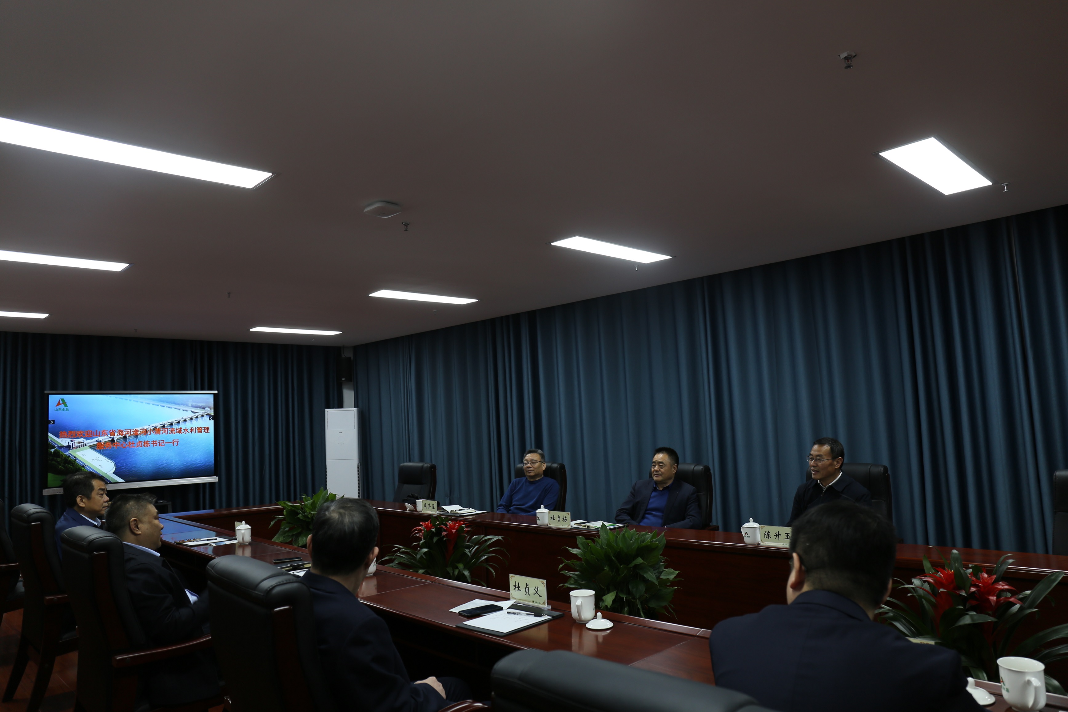 12月1日,山东省海河淮河小清河流域水利管理服务中心主任杜贞栋、山东省水利厅发展规划处处长陈升玉、山东省海河淮河小清河流域水利管理服务中心总工程师周荣星一行来到我公司座谈交流。公司党委书记、董事长刘深远,党委委员、副总经理李光市、杜贞义出席交流会议。投资经营部相关人员参加会议。