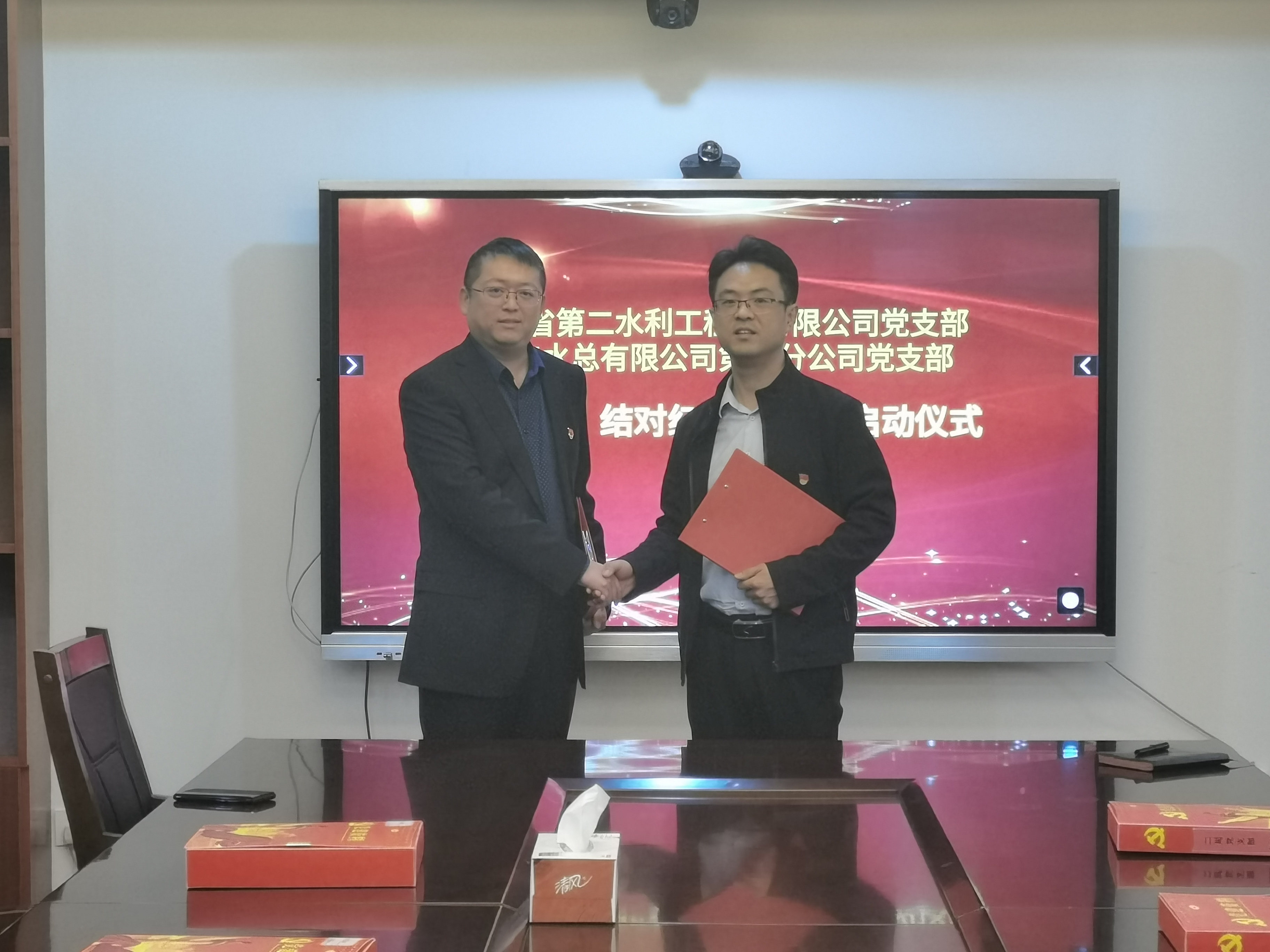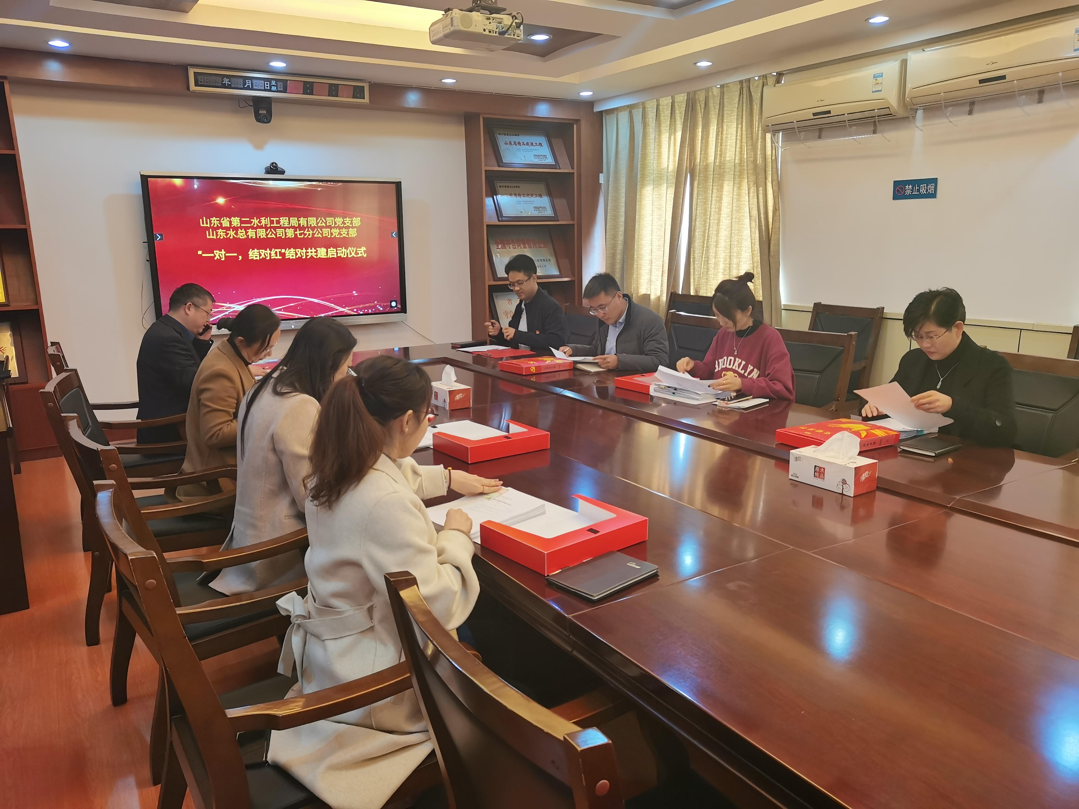 为扎实推进过硬党支部创建工作,实现互带互动、优势互补、资源共享、共同发展的党建工作新格局,12月14日,山东省第二水利工程局有限公司党支部与Huatihui官方网站第七分公司党支部共同举办了过硬党支部“一对一,结对红”共建启动仪式。